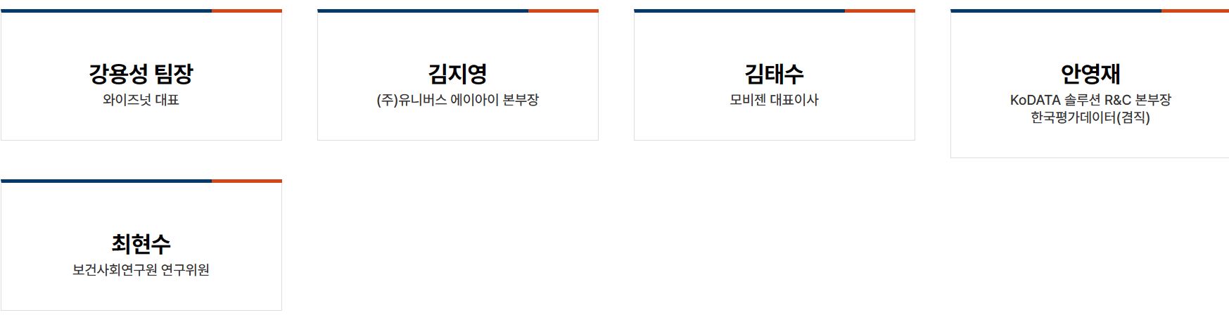 정부의 혜택(수혜적 공공서비스)을 선제적 맞춤형 혜택알리미 TF팀은 강용성 팀장 와이즈넛 대표,김지영 (주)유니버스 에이아이 본부장,김태수 모비젠 대표이사,안영재 KoDATA 솔루션 R&C 본부장,한국평가데이터(겸직)최현수 등로 구성되어있습니다.